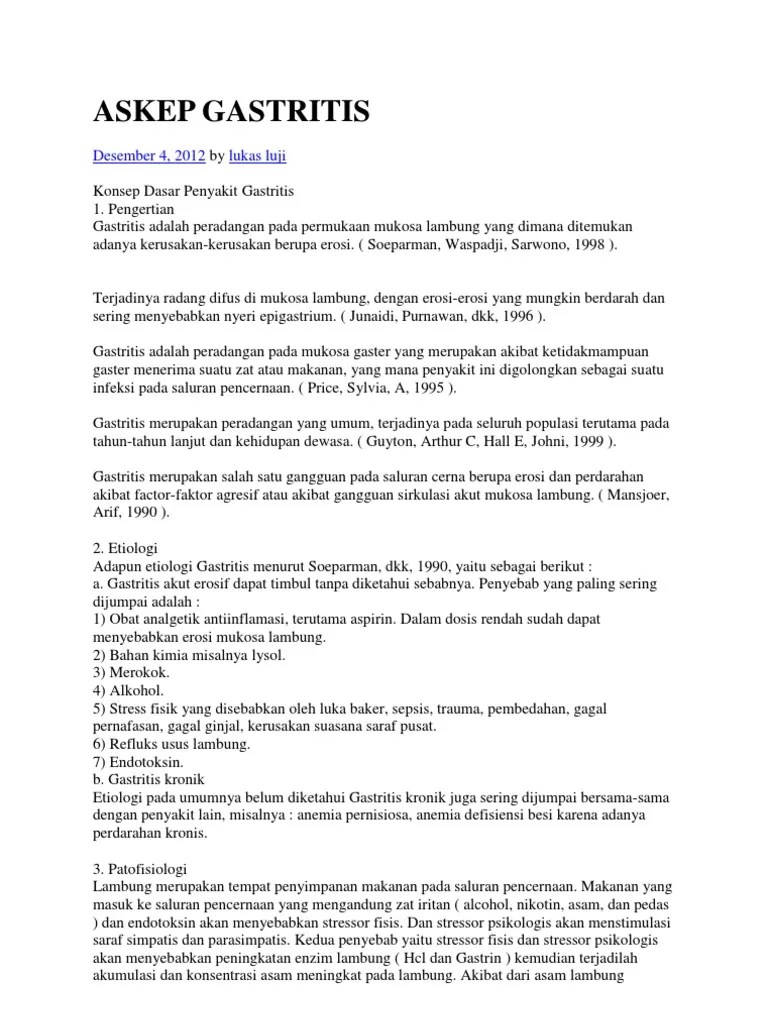 Berikut ini adalah penjelasan mengenai fungsi pankreas lebih lanjut dan gangguan yang dapat muncul jika pankreas mengalami kerusakan, juga bagaimana cara menjaga kesehatan pankreas. Gastritis superfisial akut merupakan respon mukosa lambung terhadap berbagai iritan lokal. Berlebihan inilah yang dapat mengakibatkan. Gastritis merupakan inflamasi pada dinding gaster terutama pada lapisan mukosa gaster (sujono hadi, 1999, hal : Definisi gastritis merupakan peradangan yang mengenai mukosa lambung.